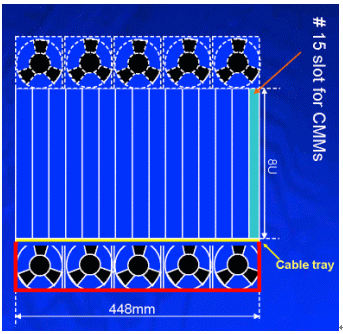 另外在機架內的放置空間上,42U的標準機架里可以放3臺12~14U機箱,若將機箱降至10U則可以放置4臺,這樣可以增加整體空間的利用率,所以有了10U機箱的設計需求。在各種不同高度的機箱設計中,風扇散熱系統(tǒng)的放置位置、方式與總散熱效能能夠達到200*14=2800W,將會是ATCA機箱設計所要考慮的最重要因素之一,尤其是在10U的機箱設計上。