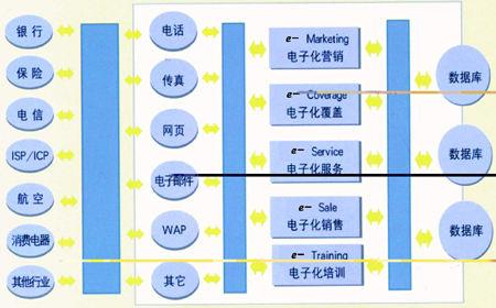 、電子化覆蓋(e-Coverage)、電子化營銷(e-Marketing)、 電子化銷售(e-Sale)和電子化培訓(xùn)(e-Training)等內(nèi)容。