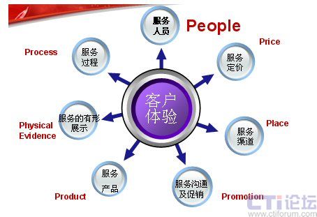 下面這張圖是服務(wù)營銷的7P模型,在這里我認(rèn)為最應(yīng)該關(guān)注的是People——人。這里,我想引用世界經(jīng)理人刊登的一篇文章“影響中國的十大管理理念”上的一段文字:“邁向服務(wù)型經(jīng)濟實際上就是邁向人才經(jīng)濟。在制造業(yè)中,價值是由機器創(chuàng)造的。在服務(wù)業(yè)中,價值則是人創(chuàng)造的!边@也是在服務(wù)業(yè)中,要將“人”進(jìn)行體現(xiàn)。也許你不在乎為你制造產(chǎn)品的工人長的美或丑,但為客戶服務(wù)的人員如果長的很丑,對服務(wù)就會有一定的影響。大家只看產(chǎn)品結(jié)果,不關(guān)注過程,但是服務(wù)卻是與過程緊密的結(jié)合。