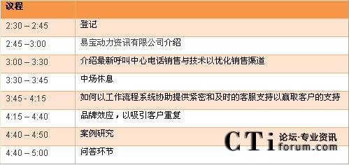 易寶動力資訊有限公司誠摯邀請您出席2010年1月22日舉行的研討會,在此將展示易寶的偉思聯(lián)絡中心CRM解決方案結(jié)合全面化工作流程和服務臺功能,如何有助您擴大銷售渠道,贏取客戶支持,微調(diào)市場預測及提升品牌以吸引忠誠客戶的支持。