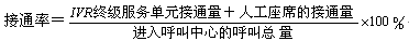 - 定義:對于具有IVR和ACD的呼入式呼叫中心,接通率是指IVR終級服務(wù)單元的接通量與人工座席的接通量之和與進(jìn)入呼叫中心的呼叫總量之比。