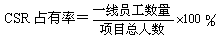 - 定義:即一線員工的占有率,是指一線員工數(shù)量與項目總?cè)藬?shù)之比。
