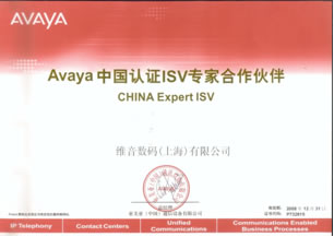 維音數(shù)碼被授權(quán)為AVAYA中國(guó)認(rèn)證ISV專家合作伙伴