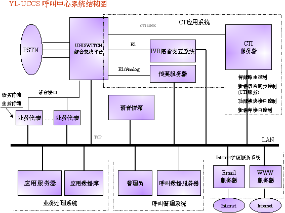 YL-UCCS呼叫中心充分利用了現(xiàn)有電信及網(wǎng)絡(luò)資源,提供多種智能服務(wù)的綜合呼叫中心框架,保證開放、統(tǒng)一的接口,以充分適應(yīng)擴(kuò)展各項(xiàng)新業(yè)務(wù)的需求。