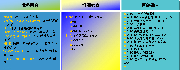 在全球部署了最大規(guī)模的移動IMS和應(yīng)用,提供視頻的共享、多媒體會議等融合業(yè)務(wù)