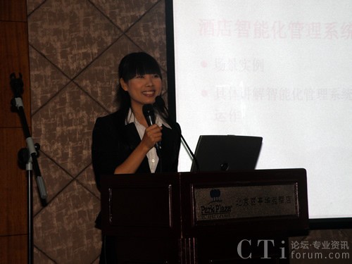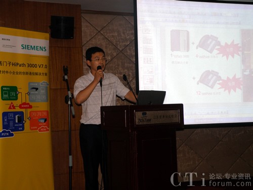 圖:廣州三信事業(yè)部經(jīng)理?xiàng)畋糖褰榻B西門(mén)子HiPath3000中小型酒店解決方案