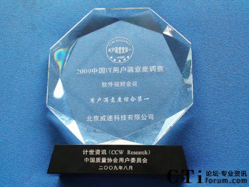 回顧過去的一年里,威速(V2)科技將產(chǎn)品和服務做到“簡單化、切實化、服務化”的獨特服務理念,獲得廣泛認可,最終被授予“2009中國IT用戶滿意度年會”這一權(quán)威獎項。喜獲此獎是對威速(V2)科技在服務方面多年來堅持不懈的肯定,更是對視頻會議平臺在中國信息化下給中國企業(yè)帶來的貢獻表示了認可。