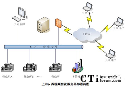 上海證券一直以來都重視IT在企業(yè)發(fā)展中的重要作用,公司成立了信息技術(shù)總部專門負責公司信息化平臺的建設與維護。2009年4月上海證券視頻會議項目進入最終選型階段,經(jīng)過多次測試和評比,最終選用音視頻效果好,運行穩(wěn)定,成熟度高的北京威速科技有限公司視頻會議產(chǎn)品V2 Conference視頻會議系統(tǒng)。2009年6月完成了項目實施部署。