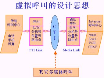 由于有了這種“虛擬呼叫”的技術(shù),CTI平臺才能夠?qū)?shí)際的電話呼叫和來自Internet的訪問進(jìn)行統(tǒng)一的處理。這是一種完整意義上的將傳統(tǒng)呼叫與Internet訪問完美結(jié)合的設(shè)計思想。