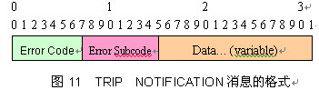 除去TRIP固定的消息頭外,NOTIFICATION消息的格式如圖11,其最小的長度為5個字節(jié)。