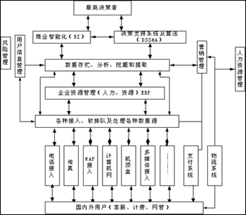 需要特別指出的是,隨著數(shù)據(jù)倉庫技術與互聯(lián)網(wǎng)呼叫中心的融合,智能化成為呼叫中心的一個重要發(fā)展方向。數(shù)據(jù)倉庫是近年發(fā)展起來的一種新的用于決策系統(tǒng)的技術,對用戶資料、市場信息以及公司業(yè)務、財務、成本、利潤等各項有關數(shù)據(jù)進行統(tǒng)計分析,最后可以獲得非常有價值的數(shù)據(jù),幫助公司決策者制定營銷策略、產(chǎn)品開發(fā)計劃等企業(yè)決策。數(shù)據(jù)倉庫技術是企業(yè)贏得未來的有力武器,因此,有遠見的企業(yè)家在建立呼叫中心時,一定要把智能化當作呼叫中心必不可少的一個部分——盡管這將加大投資,但這部分額外的投資將獲得超額的回報。