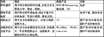 從結(jié)構(gòu)上,軟件視頻產(chǎn)品基本分為兩大類:一類是點(diǎn)對點(diǎn),另一類是一點(diǎn)對多點(diǎn)。點(diǎn)對點(diǎn)產(chǎn)品僅限于兩人之間的交流,此類典型產(chǎn)品有微軟的MSN和NetMeeting、Yahoo的雅虎通、QQ等;一點(diǎn)對多點(diǎn)產(chǎn)品用于多方的實(shí)時(shí)交流,此類產(chǎn)品是各種軟件解決方案的軟件視頻會議產(chǎn)品,如:北京捷先科技的WorldStar、威速公司的V2等。根據(jù)用途的不同,軟件視頻產(chǎn)品大致分為即時(shí)通訊產(chǎn)品(如MSN和NetMeeting、雅虎通、QQ)、網(wǎng)絡(luò)可視電話產(chǎn)品、視頻會議產(chǎn)品(如:V2)、多媒體實(shí)時(shí)交流平臺產(chǎn)品(如:WorldStar、WebEx、Interwise等),分類如表。