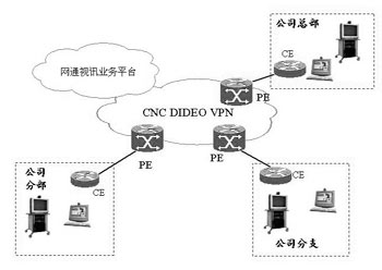 網(wǎng)通視訊業(yè)務(wù)作為應(yīng)用層的服務(wù),可以通過客戶的分支機構(gòu)之間由MPLS VPN組成的專網(wǎng)來承載視頻通信,或者通過接入網(wǎng)通的視頻VPN來使用視頻通信服務(wù)。