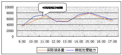 除了特定情況下的電話呼入(客戶看了廣告后致電)外,一般而言呼入業(yè)務(wù)只能保持或提高客戶對公司的滿意度,但卻不能直接為公司帶來經(jīng)濟(jì)收益,這也是常常讓管理人員困惑的一個原因-呼叫中心為什么總是一個成本中心?而呼出業(yè)務(wù)所帶來的經(jīng)濟(jì)效益卻是非常明顯的,特別是在大型的呼叫中心,由于呼入電話的數(shù)量與排班人數(shù)的實際處理量始終會有一些差距,如果能將這些時段用來做呼出業(yè)務(wù)的話(某些系統(tǒng)可以根據(jù)話務(wù)量情況自動在呼出/呼入模式之間進(jìn)行轉(zhuǎn)換),對于提高勞動效率將有很大幫助,又間接為企業(yè)節(jié)省了人力成本。如下圖所示: