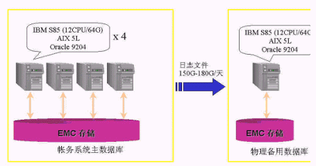 在這里簡(jiǎn)單介紹一個(gè)某省移動(dòng)公司帳務(wù)系統(tǒng)采用Oracle Data Guard物理備用數(shù)據(jù)庫(kù)的情況(見(jiàn)圖5)。