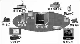 實現(xiàn)調度、呼叫處理、網絡會議的軟件(通過門戶網站,Microsoft Outlook,Web瀏覽器等);管理和目錄服務軟件;軟件或硬件終端;多標準支持,如:H.323、H.320、SIP、ISDN、IP;媒體處理硬件(會議橋和網關)。