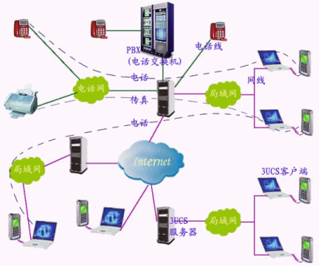 3UCS系統的安裝和使用是非常簡單的。在電腦中安裝電話語音卡/語音modem和3UCS軟件,再把電話線接入電腦,進行簡單的配置便可使用。內線共享企業(yè)數據網,使用現有IP主線路,無需另外布線,大大簡化了網絡建設,使得管理更容易,使用更便捷,維護更簡單。