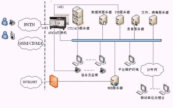 下圖是基于交換機(jī)呼叫中心的邏輯結(jié)構(gòu)圖:
