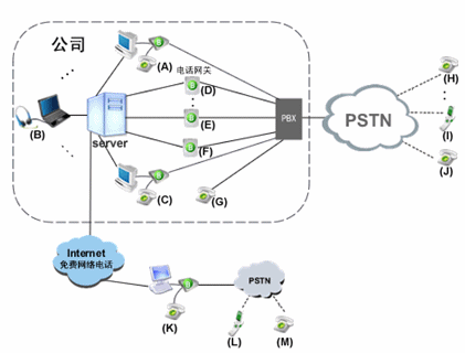 由玻瑞器客戶端和電話網關組成企業(yè)軟交換系統