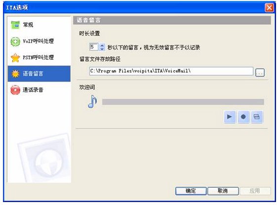 現(xiàn)在你的安裝工作已經(jīng)完成了,如果有 Skype客戶撥打cn13020063118就會聽到“歡迎致電某某公司,產品咨詢請撥15,產品訂購請撥16,人工服務請撥0”的語音提示(在ITA軟件設定的語音)。