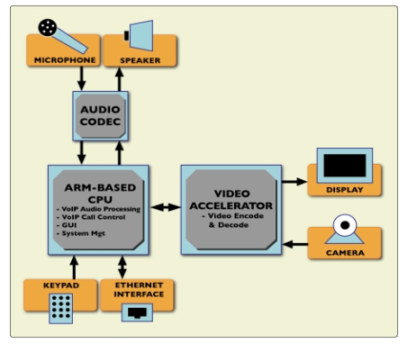 自從第一代的IP可視電話推出以來,通用應(yīng)用處理器的處理能力已經(jīng)提高到能將所有通常用DSP實現(xiàn)的語音處理器任務(wù)由應(yīng)用處理器實現(xiàn)。特別對于Wi-Fi可視電話市場來說,這是一個非常重要的進(jìn)步,因為無線連接的設(shè)備基本的需求是降低功耗,最大化電池壽命。