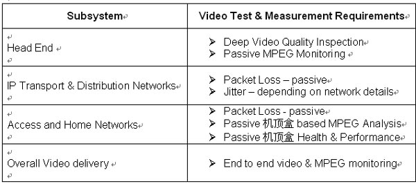 圖2總結(jié)了IPTV網(wǎng)絡中每個子系統(tǒng)相關(guān)的測試和管理需求。