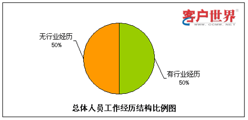 呼叫中心由于高壓力、24小時輪班等工作特性,有相當比例的流失是因為不適應工作環(huán)境而導致的,其中一個主要原因就是新入職員工想象中的工作環(huán)境和現(xiàn)實情況大相徑庭。而有呼叫中心工作經(jīng)驗的員工對于這點的適應性相對較強,因此我們對呼叫中心員工是否有行業(yè)經(jīng)歷方面的情況進行了統(tǒng)計分析。