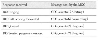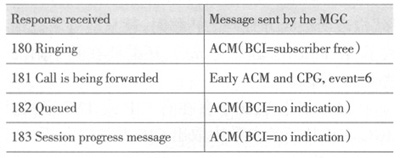 。6)發(fā)出ACM消息后,所有的臨時消息將被翻譯成ISUP CPG消息;