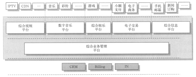 。3)對(duì)各增值業(yè)務(wù)缺乏統(tǒng)一分析、規(guī)劃、運(yùn)營(yíng)機(jī)制。由于用戶習(xí)慣、市場(chǎng)發(fā)展、增值業(yè)務(wù)特征等使各增值業(yè)務(wù)平臺(tái)功能在不同時(shí)期開(kāi)展情況不同,需要對(duì)各平臺(tái)用戶信息、業(yè)務(wù)信息進(jìn)行統(tǒng)一提取、分析,用以幫助業(yè)務(wù)功能整體架構(gòu)部署、靈活調(diào)整業(yè)務(wù)發(fā)展策略和建設(shè)策略。
