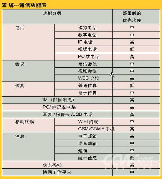 ”、“智能通信”和“統(tǒng)一溝通”等,盡管每個(gè)廠(chǎng)商所給出的定義均有些細(xì)微的差別,但總體來(lái)看,其核心內(nèi)容就是指將現(xiàn)在各種溝通方式進(jìn)行融合,目的是讓人們無(wú)論是在任何時(shí)間、任何地點(diǎn),都可以通過(guò)任何設(shè)備、任何網(wǎng)絡(luò)實(shí)現(xiàn)自由的溝通。目前常用的溝通方式有電話(huà)、傳真、短信、email、Web會(huì)議、視頻會(huì)議、語(yǔ)音信箱、IM軟件、協(xié)同工作平臺(tái)等等,這些溝通方式覆蓋了電信、IT和互聯(lián)網(wǎng)三大領(lǐng)域,因此統(tǒng)一通信是這三大領(lǐng)域逐步發(fā)展、自然融合的結(jié)果。