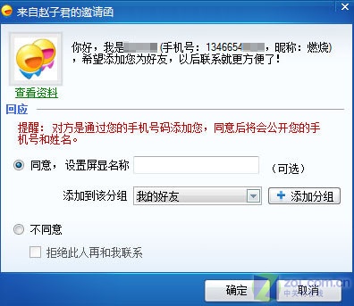 在圖3中,用戶在確認(rèn)好友發(fā)來的信息時(shí),為避免好友過多而忘記對方的身份,可以直接在上圖中增加類似QQ和MSN的“備注信息”,也即“屏顯名稱”。