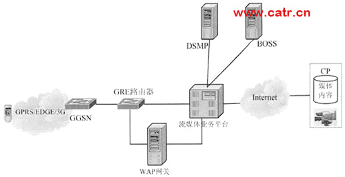 圖1 利用流媒體技術實現(xiàn)的手機電視業(yè)務網(wǎng)絡結(jié)構(gòu)