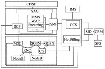 通過上述分析可見,采用升級改造現(xiàn)有計費系統(tǒng)進而建設(shè)3G融合計費系統(tǒng)的方案是比較恰當(dāng)?shù)倪x擇。目前認(rèn)可度較高的3G融合計費解決方案體系架構(gòu)如圖3所示。