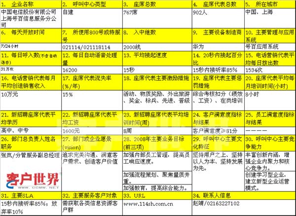 上海電信114號碼百事通分公司的前身是114查號中心,隨著企業(yè)的轉(zhuǎn)型發(fā)展,成為融合號碼資源和信息資源所發(fā)展起來的全新的語音信息咨詢服務(wù)平臺,通過電話、互聯(lián)網(wǎng)、IPTV等服務(wù)通道為廣大用戶提供本地綜合的生活信息咨詢服務(wù),同時也為企業(yè)及商家提供商品發(fā)布。