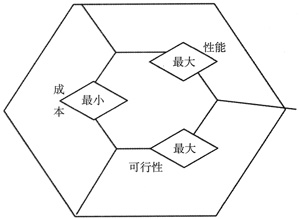 一個(gè)最優(yōu)的網(wǎng)絡(luò)具有的特性是:具有最好的性能,可以具體的施行并且成本盡可能的小,如圖3所示。