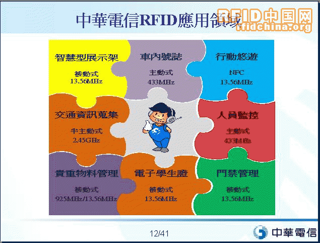 目前,中華電信主要鎖定的RFID應用領域包括:車牌號碼管理、交通管理、重要物品管理、人員監(jiān)控、門禁管理、電子學生證管理等。