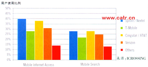 美國(guó)的移動(dòng)搜索業(yè)務(wù)發(fā)展迅速,領(lǐng)先全球市場(chǎng)。根據(jù)美國(guó)市場(chǎng)調(diào)查公司的調(diào)查,美國(guó)移動(dòng)用戶中,經(jīng)常使用移動(dòng)搜索的用戶達(dá)到22%。美國(guó)主流運(yùn)營(yíng)商均已經(jīng)推出了移動(dòng)搜索業(yè)務(wù),其中Sprint和合并后的Cingular/AT&T業(yè)務(wù)發(fā)展較好。