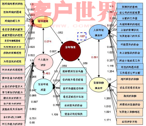 - 客服代表工作滿意度的人際環(huán)境滿意度能夠顯著預(yù)測(cè)客服代表的全年績(jī)效。通過將客服代表生活質(zhì)量問卷和工作滿意度問卷的得分情況與客服代表全年績(jī)效之間進(jìn)行全模型回歸分析,發(fā)現(xiàn)工作滿意度中的人際環(huán)境滿意度能夠顯著預(yù)測(cè)客服代表的全年績(jī)效。