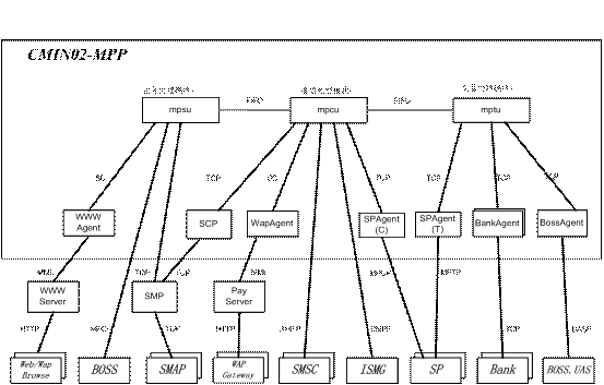 Provider)的交易請求,根據用戶的賬戶設置情況,與本地數據庫(或銀行、或BOSS系統)交互,完成對用戶支付賬戶的扣費操作;業(yè)務受理部分MPSU:完成業(yè)務受理的功能,處理管理員、營業(yè)廳操作員、或用戶的業(yè)務管理請求,進行相應查詢、配置或計算,并返回結果;代理部分Agent,例如:WWWAgent,BankAgent等負責與各個外部實體的通信;另外,系統還應有輔助模塊用來完成系統各進程的守護、監(jiān)視、控制、以及系統性能數據的采集功能。