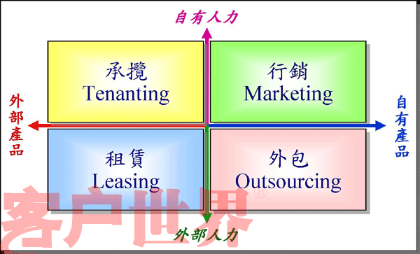 Matrix)就是由內(nèi)、外部的產(chǎn)品與人力所組合成的四個(gè)營(yíng)運(yùn)領(lǐng)域(如圖五)。