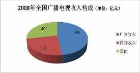 由于中國特色的收視習慣和廣播電視輿論宣傳功能,低門檻甚至零門檻的電視收視費用,使得有線網(wǎng)絡在整個商業(yè)價值鏈條上沒有顯示出應有的價值,而真正處于價值鏈核心的是以廣告為主體收入的電視臺。