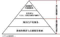 擁有4億多注冊用戶的騰訊,占有中國即時通信80%的市場份額,互聯(lián)網(wǎng)行業(yè)贏家通吃的定律顯露無疑,騰訊在海量用戶群基礎上開發(fā)的各種業(yè)務都在行業(yè)排名前列。當電視服務的規(guī)模用戶群得以穩(wěn)固,基于用戶規(guī)模之上的多元化服務集成成為可能,對電視服務形成高度依賴的用戶群具備了價值挖掘的條件。人人交互、人機交互依托基礎的電視分眾門戶化應用,形成了最初的用戶使用習慣;依托電視分眾門戶化集成的積累,建立用戶識別、用戶分析、收視分析、用戶數(shù)據(jù)交換的技術體系,用以支撐未來多元化娛樂與服務的開發(fā)。基于IPTV的交互能力,依托電視終端的易用性與舒適性,用戶價值、終端價值被充分挖掘,電視服務開始對其他媒介形式(含互聯(lián)網(wǎng))的用戶形成吸納。圍繞交互、商務需求的電子貨幣體系逐漸完善,電視進入可有效運營、可便捷支付的良性的產(chǎn)業(yè)循環(huán),IPTV多元化業(yè)務之門打開。