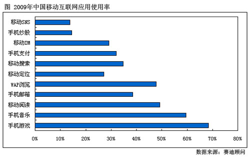 圖:2009年中國移動互聯(lián)網(wǎng)應(yīng)用使用率