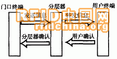 由門口終端發(fā)送一幀信息給分層器,分層器接收到以后,被呼叫的分層器將信息分發(fā)給本層所有的用戶終端,并等待用戶終端的確認(rèn)。被呼叫的用戶終端收到信息后,立即發(fā)送確認(rèn)信息給分層器,分層器收到以后,給門口終端發(fā)送確認(rèn)信息。門口終端收到分層器的確認(rèn)后,打開攝像頭和音頻麥克風(fēng),此時雙方可以進(jìn)行對話。