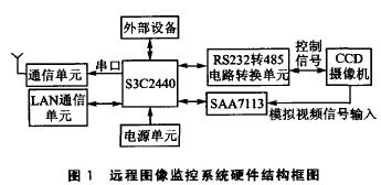 在嵌入式領(lǐng)域,ARM9系列微處理器在高性能和低功耗方面提供了最佳的性能,因此選用ARM9嵌入式處理器S3C2440設(shè)計(jì)實(shí)現(xiàn)了一個(gè)遠(yuǎn)程圖像光線監(jiān)控系統(tǒng)通過這個(gè)系統(tǒng),可以遠(yuǎn)在千里之外控制一個(gè)攝像機(jī)進(jìn)行圖像采集并回傳。如果這個(gè)攝像機(jī)有一個(gè)485接口的云臺(tái),還可以通過互聯(lián)網(wǎng)遠(yuǎn)程控制攝像機(jī)的取景角度、鏡頭拉伸、聚焦等功能.