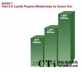 據(jù)權(quán)威的客戶忠誠度研究機(jī)構(gòu)COLLOQUY在2009出版的一份報告,2008年底,全美客戶忠誠度計劃的參與人次達(dá)到18.07億,平均每個美國家庭參與了14.1個忠誠度計劃,相較2006年底的13.41億參與人次,共增了了24.73%(連續(xù)兩年環(huán)比增長12%/年),而同期美國的GDP增長僅為2.2%。從這一點(diǎn)上看,美國企業(yè)對忠誠度營銷的熱情不減,盡管忠誠度營銷在美國已相當(dāng)成熟,但美國企業(yè)仍然把它當(dāng)作是營銷的重要工具。