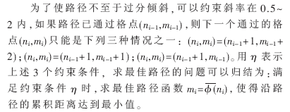把測(cè)試模版的各個(gè)幀號(hào)n=1,…,N在一個(gè)二維直角坐標(biāo)系的橫軸上標(biāo)出,把參考模版的各幀號(hào)m=1,…,M在縱軸上標(biāo)出,通過(guò)這些表示幀號(hào)的整數(shù)坐標(biāo)畫(huà)出的橫縱線即可形成一個(gè)網(wǎng)格,網(wǎng)格中的每一個(gè)交叉點(diǎn)(n,m)表示測(cè)試模版中某一幀與訓(xùn)練模版中某一幀的交叉點(diǎn)。動(dòng)態(tài)規(guī)劃算法可以歸結(jié)為尋找一條通過(guò)此網(wǎng)格中若干格點(diǎn)的路徑,路徑通過(guò)的格點(diǎn)即為測(cè)試和參考模版中距離計(jì)算的幀號(hào)。