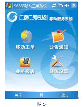 移動工單系統(tǒng)是數(shù)字電視客戶呼叫中心平臺系統(tǒng)的延伸,它結合最新的網(wǎng)絡移動技術,實現(xiàn)數(shù)字電視服務工單分派業(yè)務的自動流轉和實時流轉,各地市維護站的服務工作人員通過智能手機終端,實時獲取工作任務、計劃安排,進行業(yè)務處理,通過移動網(wǎng)絡查詢客戶信息、查詢用戶產(chǎn)品訂購資料,上報處理結果和用戶反饋信息,通過移動網(wǎng)絡提交到管理部門,管理層能及時的掌握服務進展情況,并能隨時做出決策和指揮,真正實現(xiàn)對用戶最快速、有效的服務需求響應,保證了服務質(zhì)量和用戶滿意度,提升了數(shù)字電視的服務水平與服務檔次。其界面如圖1所示。