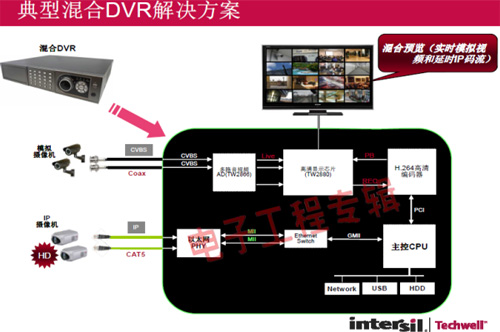 革命性的Intersil Techwell SLOCTM(Security Link over Coax)同軸電纜復(fù)合視頻傳輸解決方案是可通過一條同軸電纜同時傳輸模擬 CVBS 視頻和高清數(shù)字 IP 視頻信號的先進調(diào)制解調(diào)器解決方案,其采用最新MODEM PHY技術(shù)的傳輸解決方案,可以基于同軸電纜同時傳輸高清IP碼流和標(biāo)清模擬實時視頻。