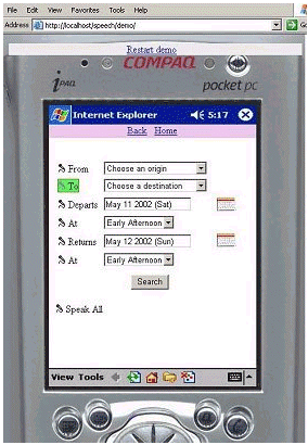 具有語(yǔ)音識(shí)別功能的、面向Pocket PC的應(yīng)用的演示畫面